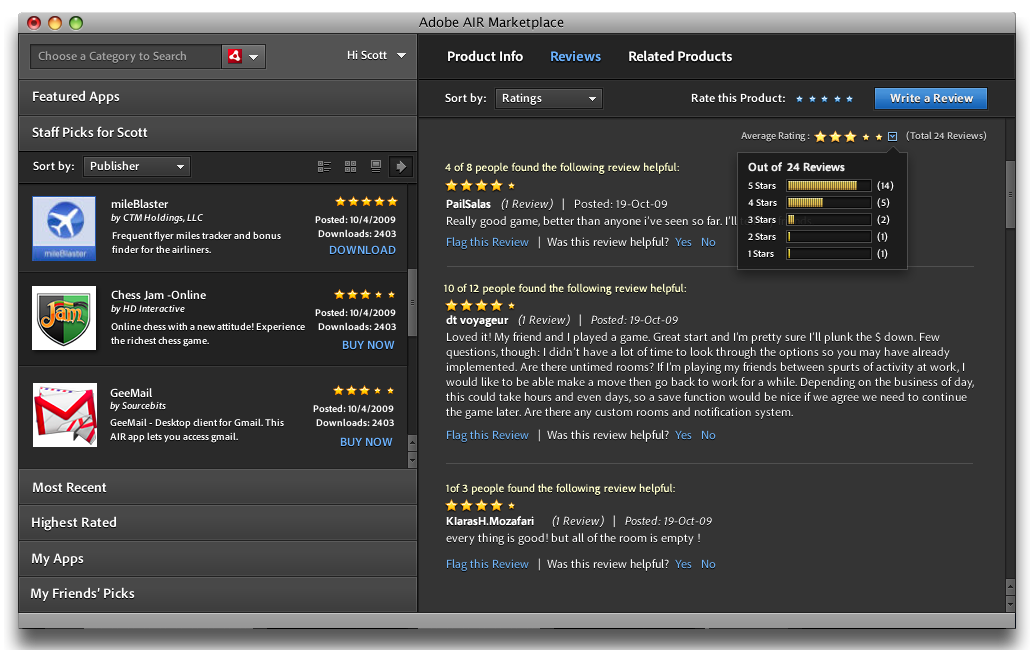 Extended View: Sliding Panel with Reviews and Star Ratings